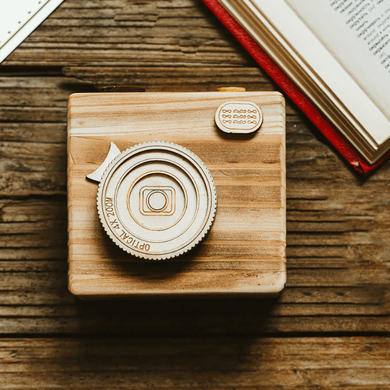 Camera Wooden Box for Film Roll Keychain