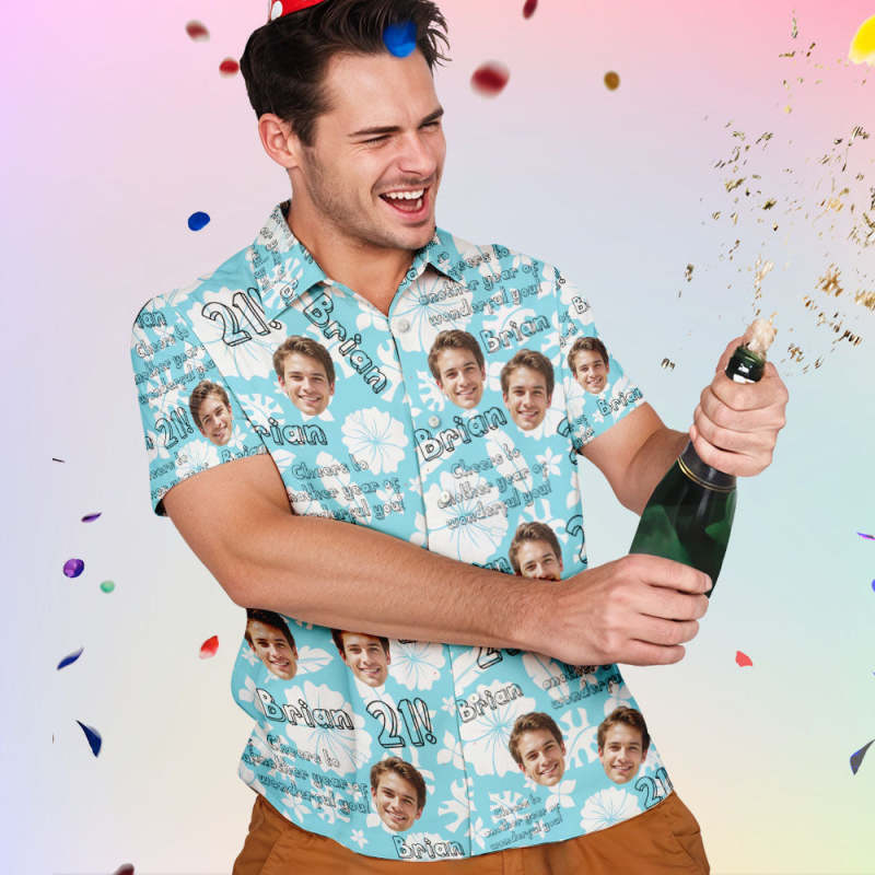 21th Birthday Custom Button-down Shirts Brithday Hawaiian Shirts Gifts For Him