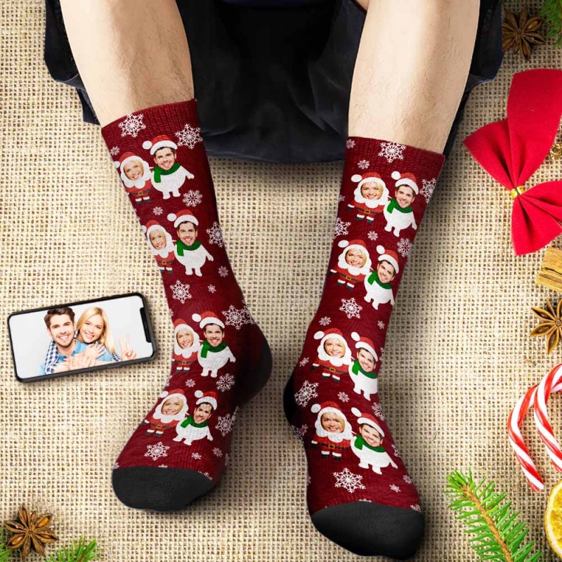 Custom Face Socks Personalised Christmas Shorts With Photo Santa and Snowman
