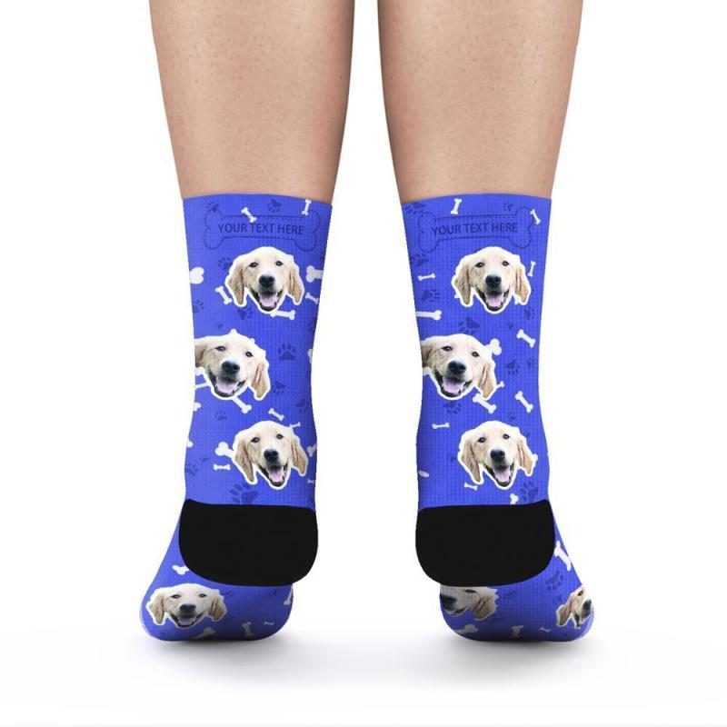 Custom Rainbow Socks Dog With Your Saying - Blue