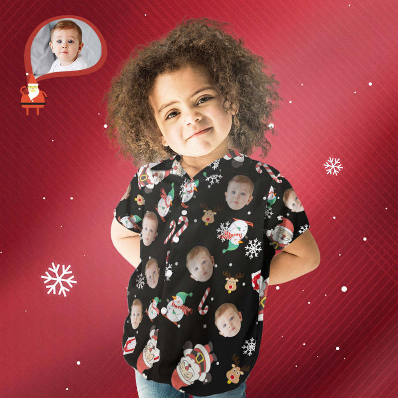 Custom Face Family Matching Hawaiian Outfit Christmas Pool Party Parent-child Wears - Snowman Skiing Candy Cane Holiday Gifts