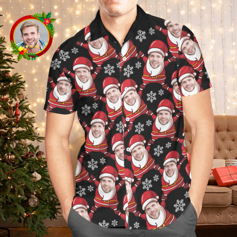 Custom Face Hawaiian Shirts Personalised Photo Gift Men's Christmas Shirts Santa Claus and Snowflake