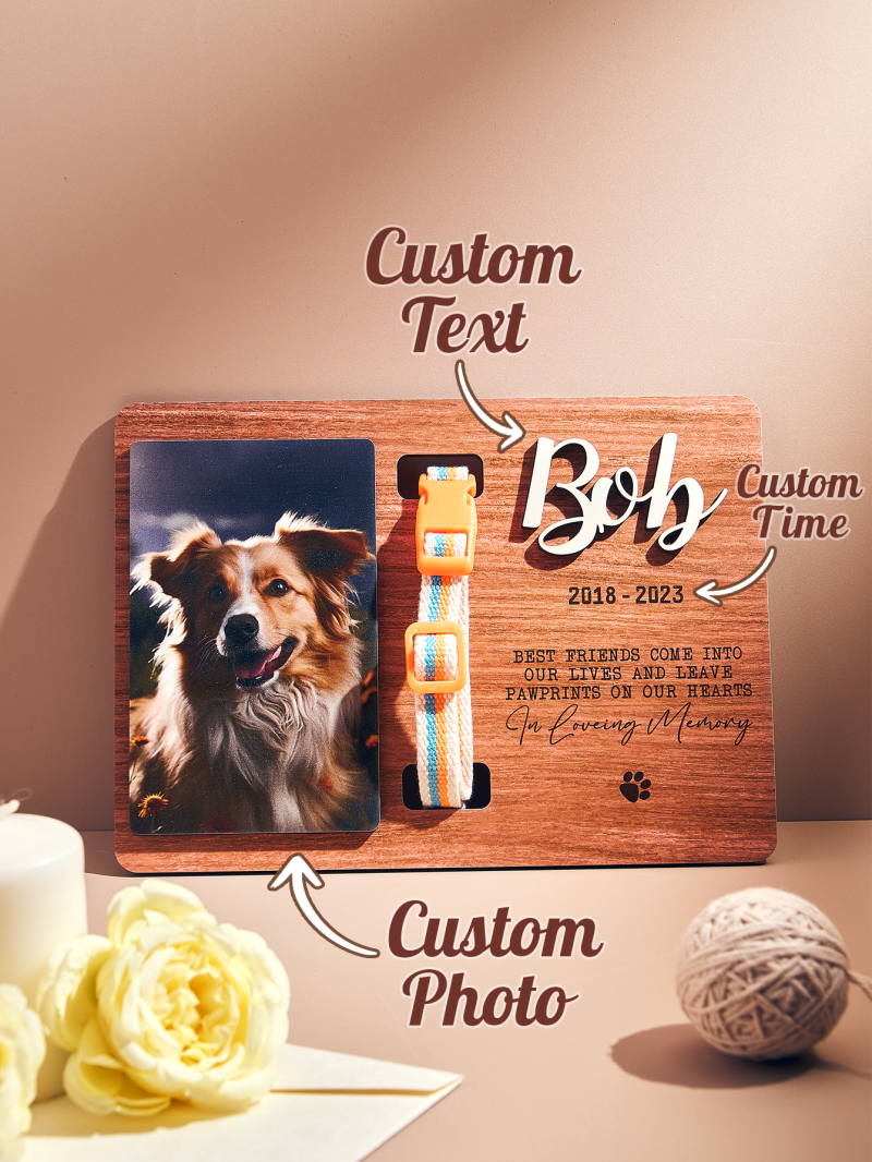 Custom Memorial Pet Collar Sign Personalized Dog Memorial Wood Frame With Collar Holder Dog Memorial Gifts Pet Loss Gifts