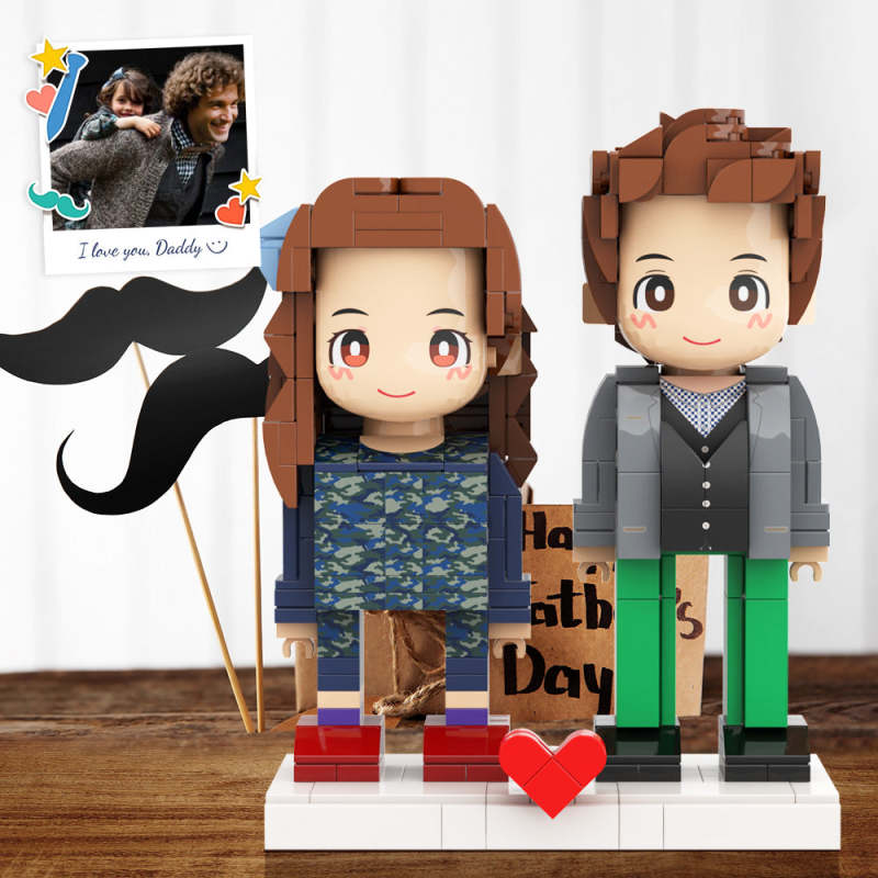 Full Body 2 People Duddu Brick Figures Custom Brick Figure For Daddy Perfect For Father's Day For Stylish Daddy Take Care Of His Little Daughter