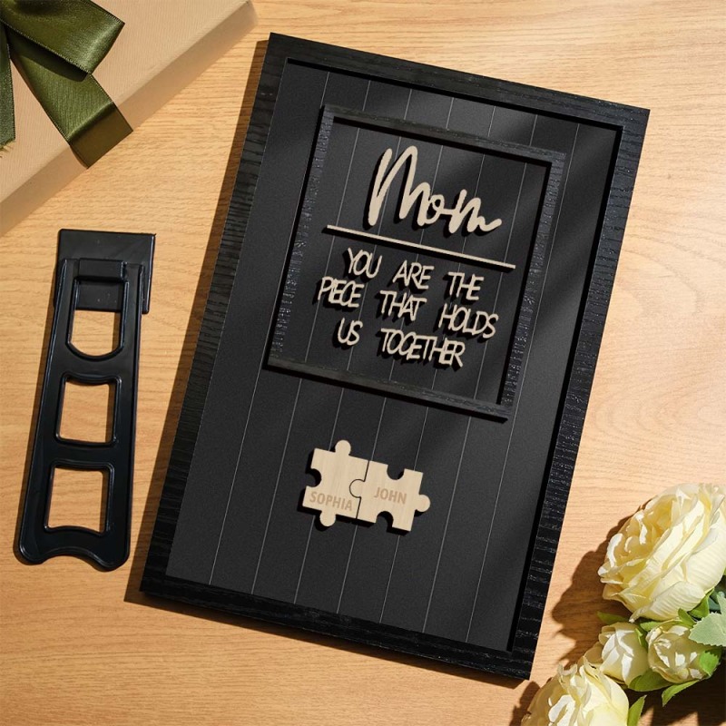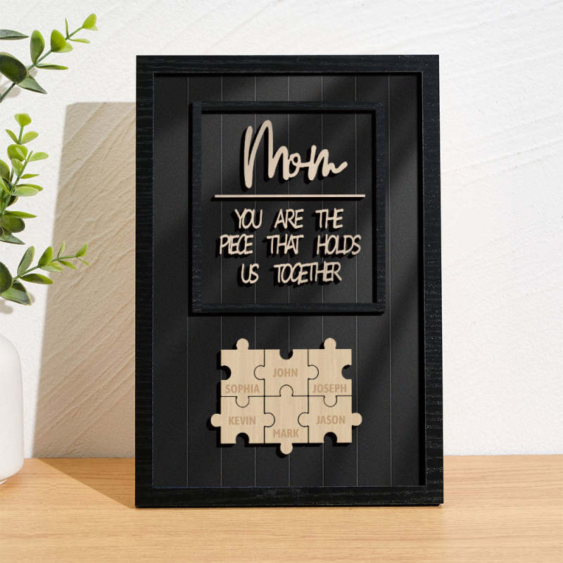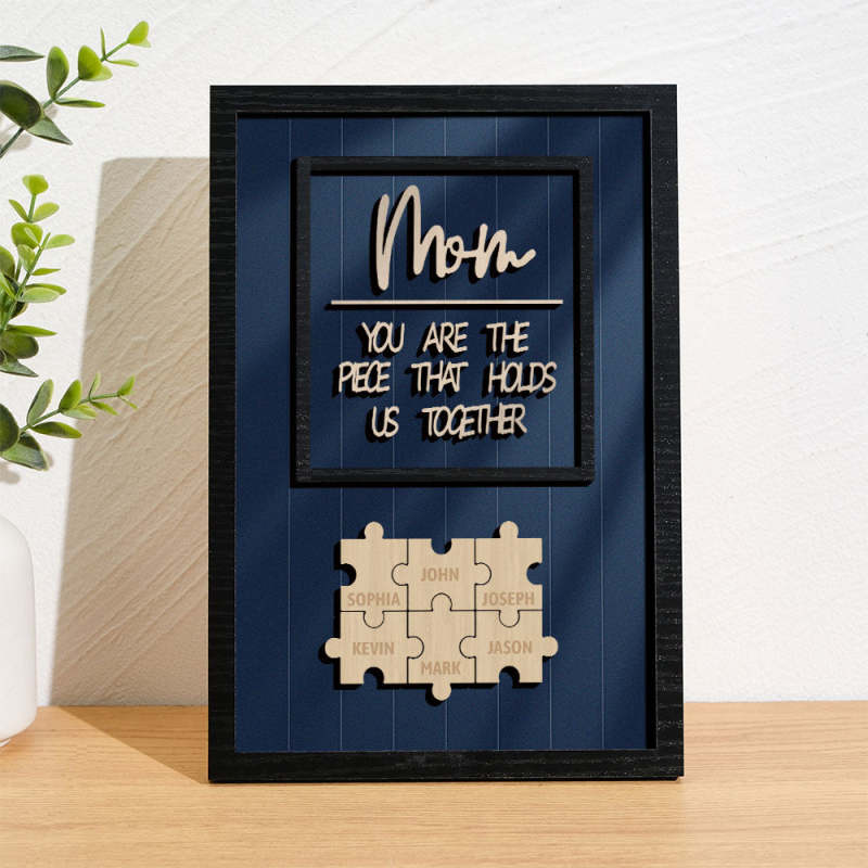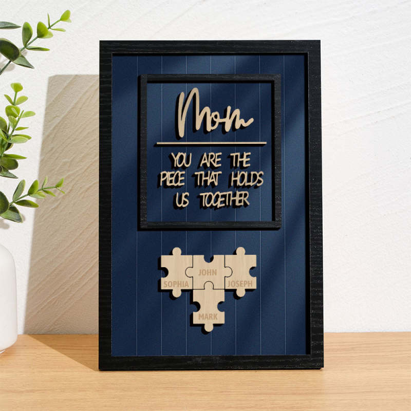 Personalized Name Mom Puzzle Wooden Frame Sign You Are The Piece That Holds Us Together