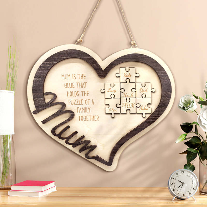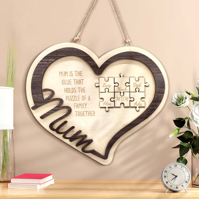 Personalised Wooden Heart Puzzle Sign Mother's Day Gift for Mum